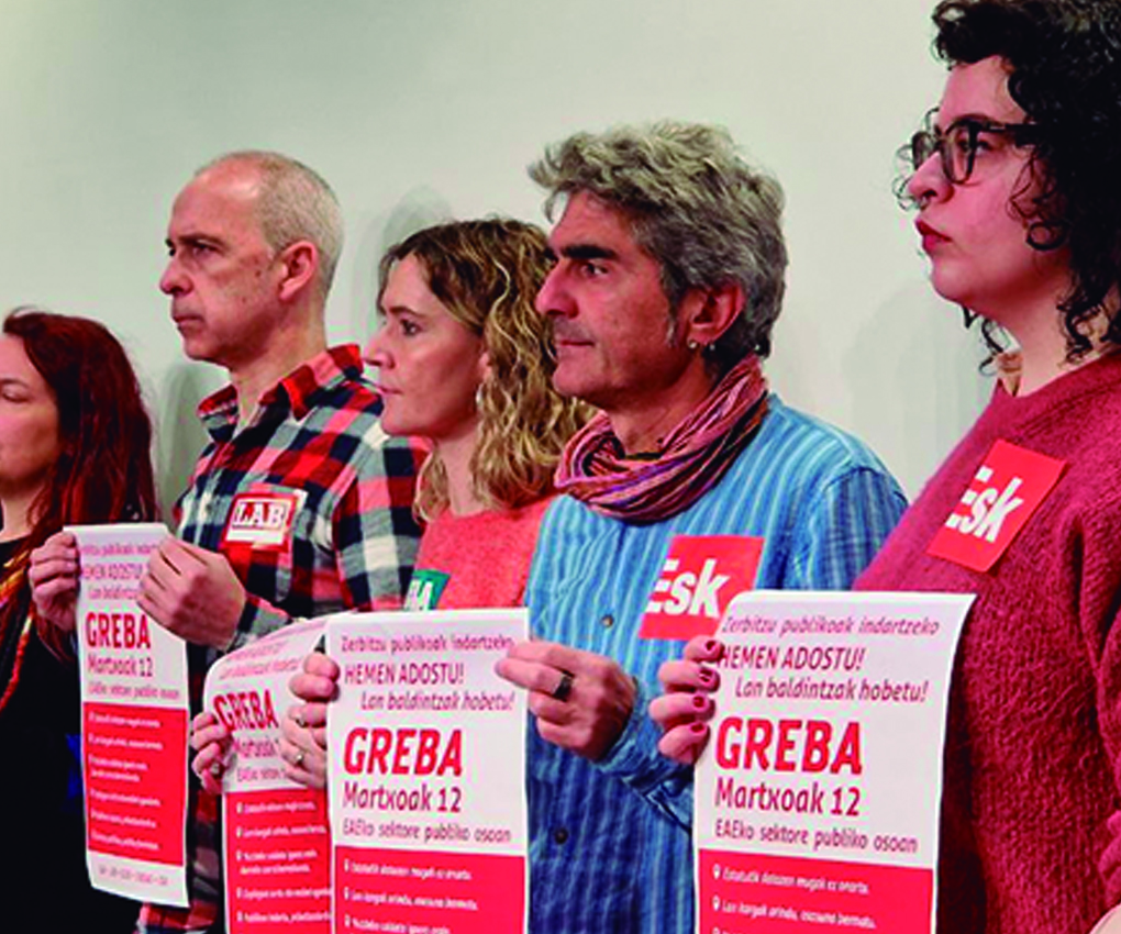 Para reforzar los servicios públicos y seguir influyendo para acordar aquí el salario y el empleo, el 12 de marzo huelga en todo el sector público de la CAV.