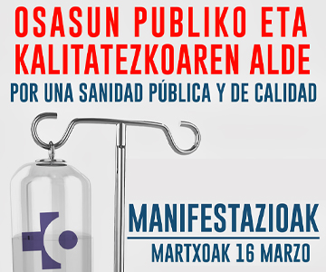 Ante la gravedad de la situación que vive la sanidad pública y la nula voluntad de buscar soluciones por parte del Departamento de Salud, llamamos a la plantilla de Osakidetza de Araba a secundar de
