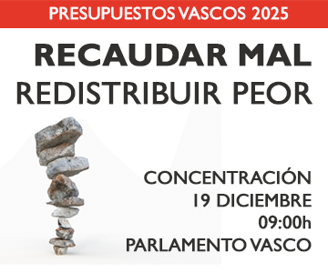 Los presupuestos del Gobierno Vasco para 2025 recaudan mal y redistribuyen peor. Este jueves 19 de diciembre vamos a reclamar en Gasteiz unos presupuestos que apuesten realmente por lo público y que